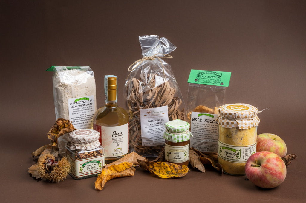 Dalla farina di castagne macinata a pietra all’infuso vin brulè, dai porcini alla grappa alla pera, questo box racchiude la vera anima dell’autunno.
